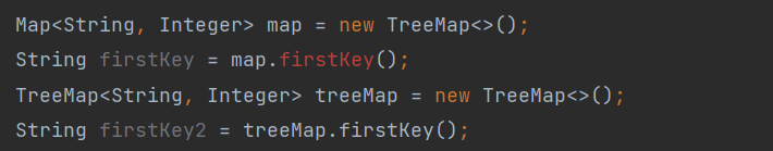 중요한 점은 TreeMap에서만 제공하는 메서드를 사용하려면 Map인터페이스로 업캐스팅하여 생성하면 안 된다는 점이다.
