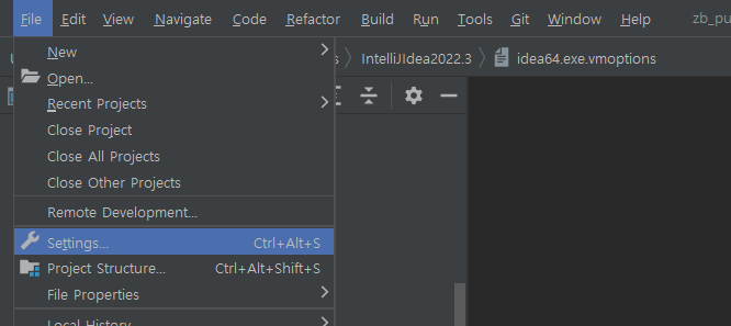 1) File -> Settings ...