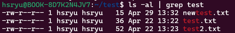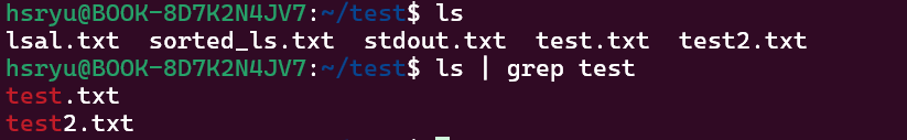 위와 같이 ls 명령에 대한 표준 출력을 파이프('|')를 통해 grep 명령어의 표준 입력으로 사용한다.