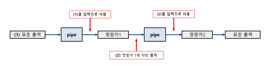 파이프는 하나의 표준 출력을 다른 명령의 표준 입력으로 사용하는 명령어이다.