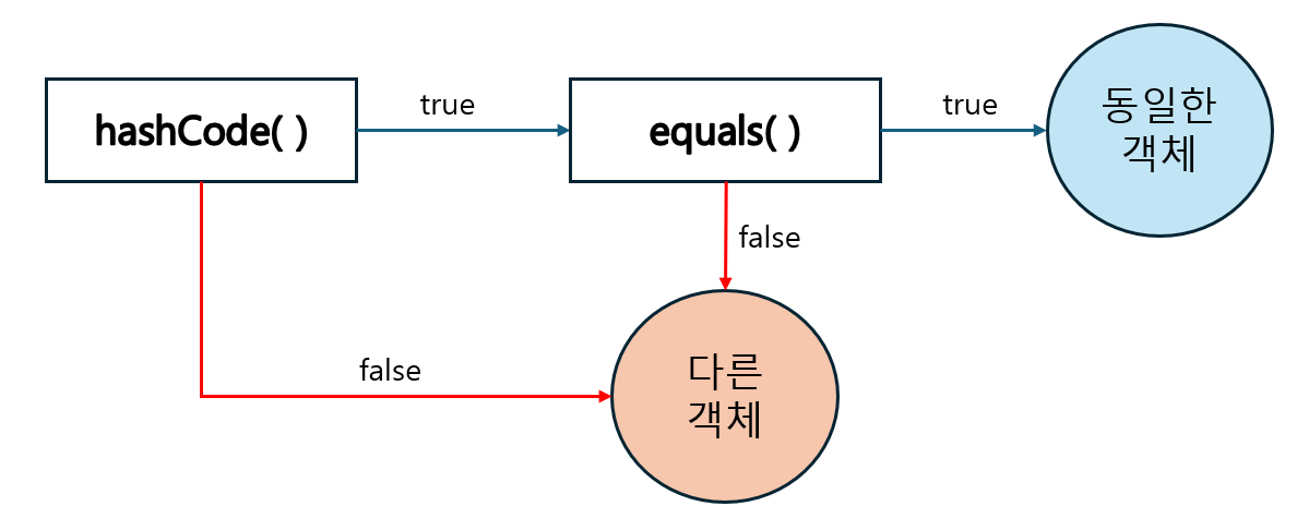 hash 값을 사용하는 Collection(HashMap, HashSet 등)은 객체가 동일한지 비교할 때 아래와 같은 과정을 거친다.